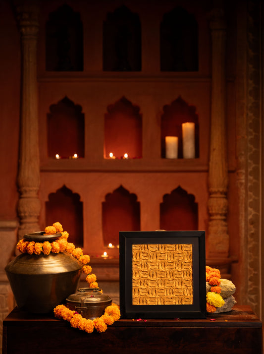 Resembling woven textures carved in stone, this artwork is created through embossed leather techniques in...