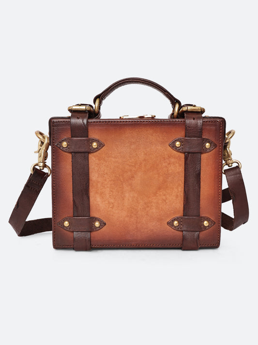 Product Details -· Material: 100% Real Leather· Lining: 100% Cotton. Color: Cognac. Product Type: Trunk Crossbody...