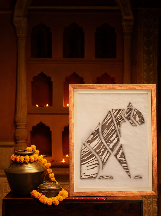 A commanding tiger emerges through bold geometric leatherwork, symbolising strength, guardianship, and untamed energy. The...