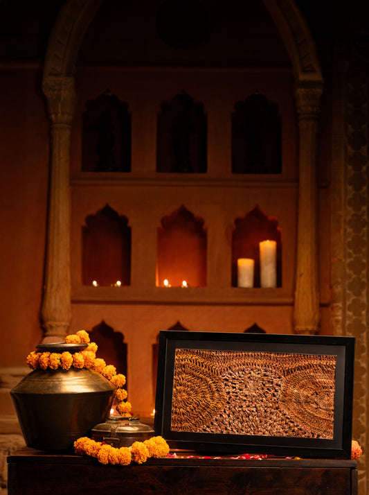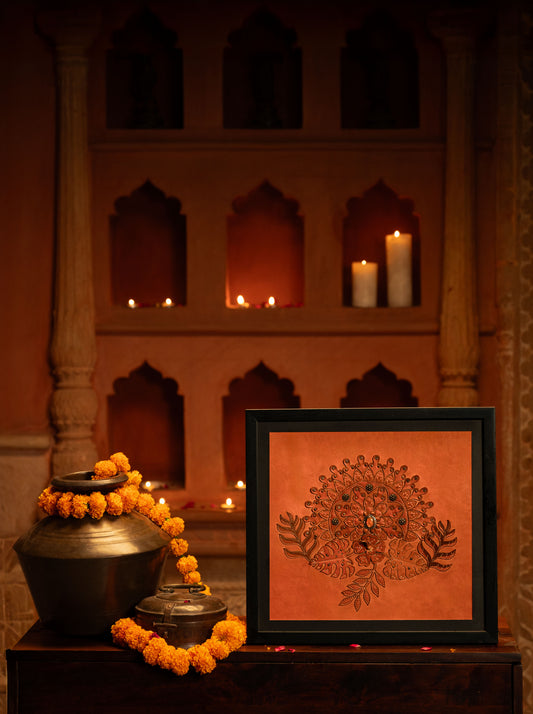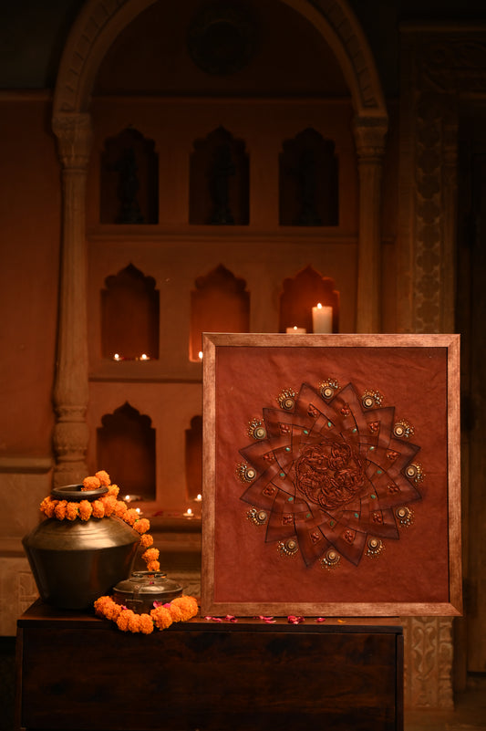 This artwork is inspired by the spiritual essence of mandala art, crafted with layered leather...