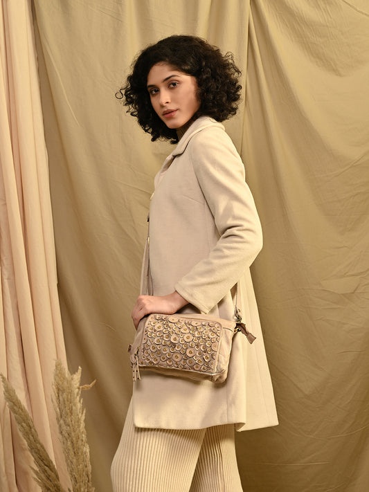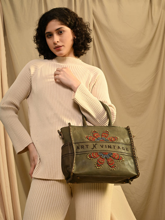 Product Details:- Material:100% Cow LeatherLining:100% CottonMetal Fittings: GoldTechnique: Leather 3D floral pattern captures the era's...