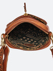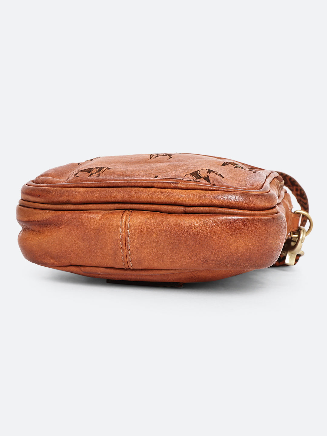 The 40/41 Compact Crossbody is designed for effortless movement and understated sophistication. Handcrafted from premium vegetable-tanned leather, it bears a rich tan hue, softened through a meticulous washing and polishing process that enhances its natural texture. The surface is adorned with signature 40/41 geometric animal motifs — each representing agility, wisdom, and grace — engraved using laser etching and finished with delicate color inlays.