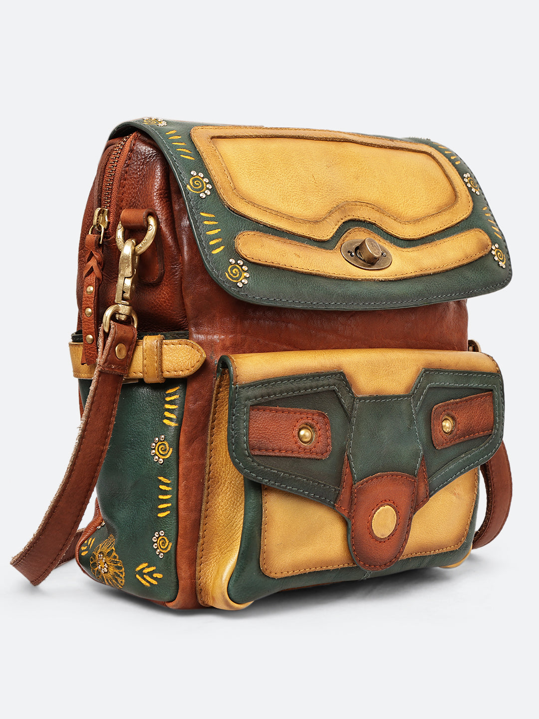 The Leather Auto Crossbody is a masterpiece of color, texture, and innovation — a design that celebrates motion and craftsmanship. Inspired by vintage automobile interiors, this piece brings a bold fusion of mustard, forest green, and deep brown tones, each achieved through meticulous hand-dyeing and layer-by-layer polishing. The result is a bag with character — rich in hue, soft in texture, and alive with personality.