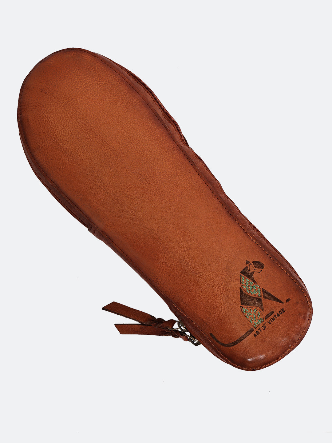 Crafted for the discerning traveler, the 40/41 Leather Slipper Case brings together elegance and purpose. Made from full-grain tan leather, it’s soft to the touch yet structured enough to hold shape, ensuring your travel essentials remain neatly stored. The highlight lies in its printed animal motif — an abstract panther — symbolizing grace, agility, and quiet power.