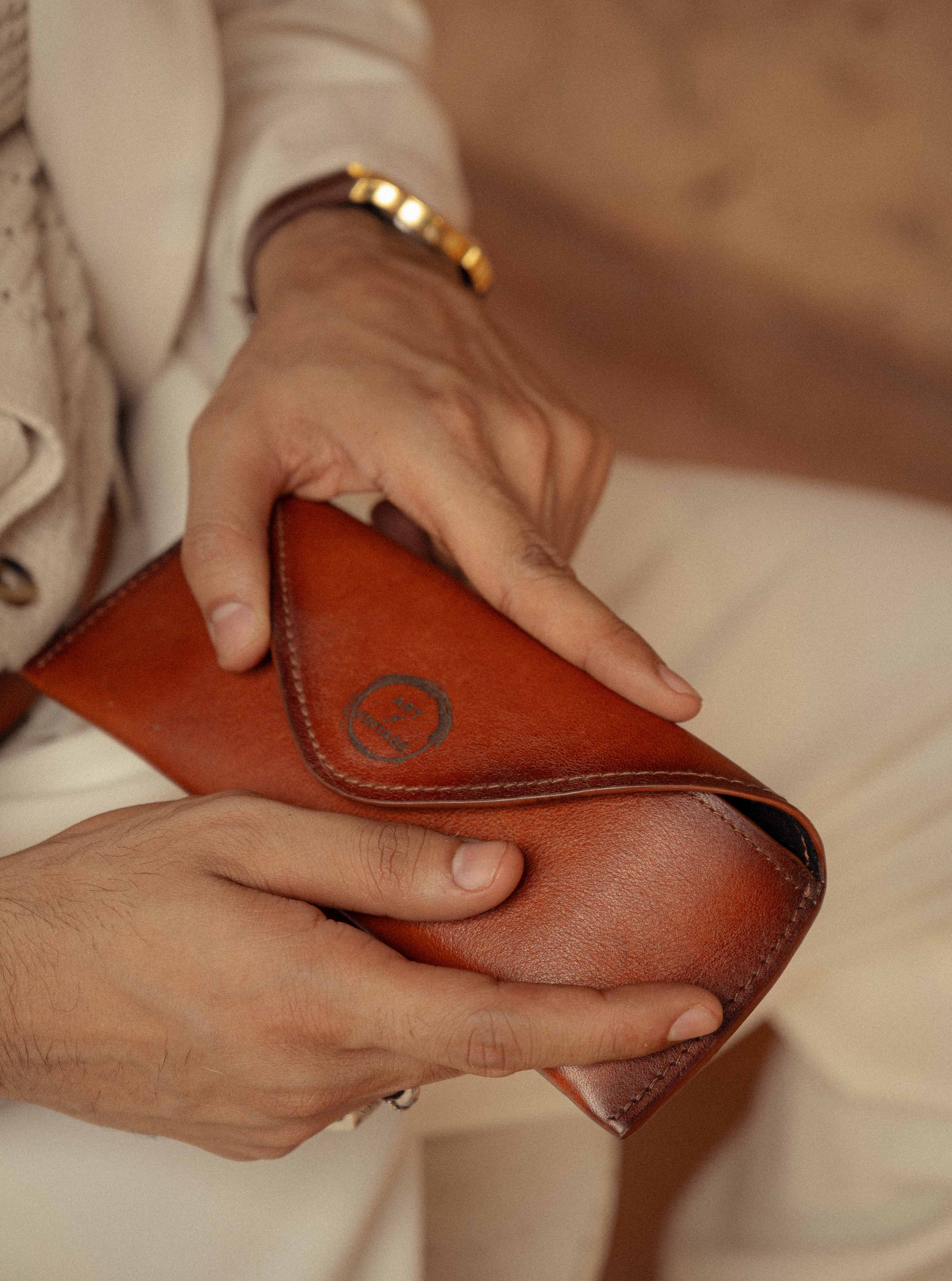 Sleek and timeless, these envelope-style leather cases feature a slightly elongated design, offering extra space for larger sunglasses or travel eyewear. With a smooth finish and firm closure, they blend minimalist aesthetics with everyday functionality — a refined essential for people always on the move.