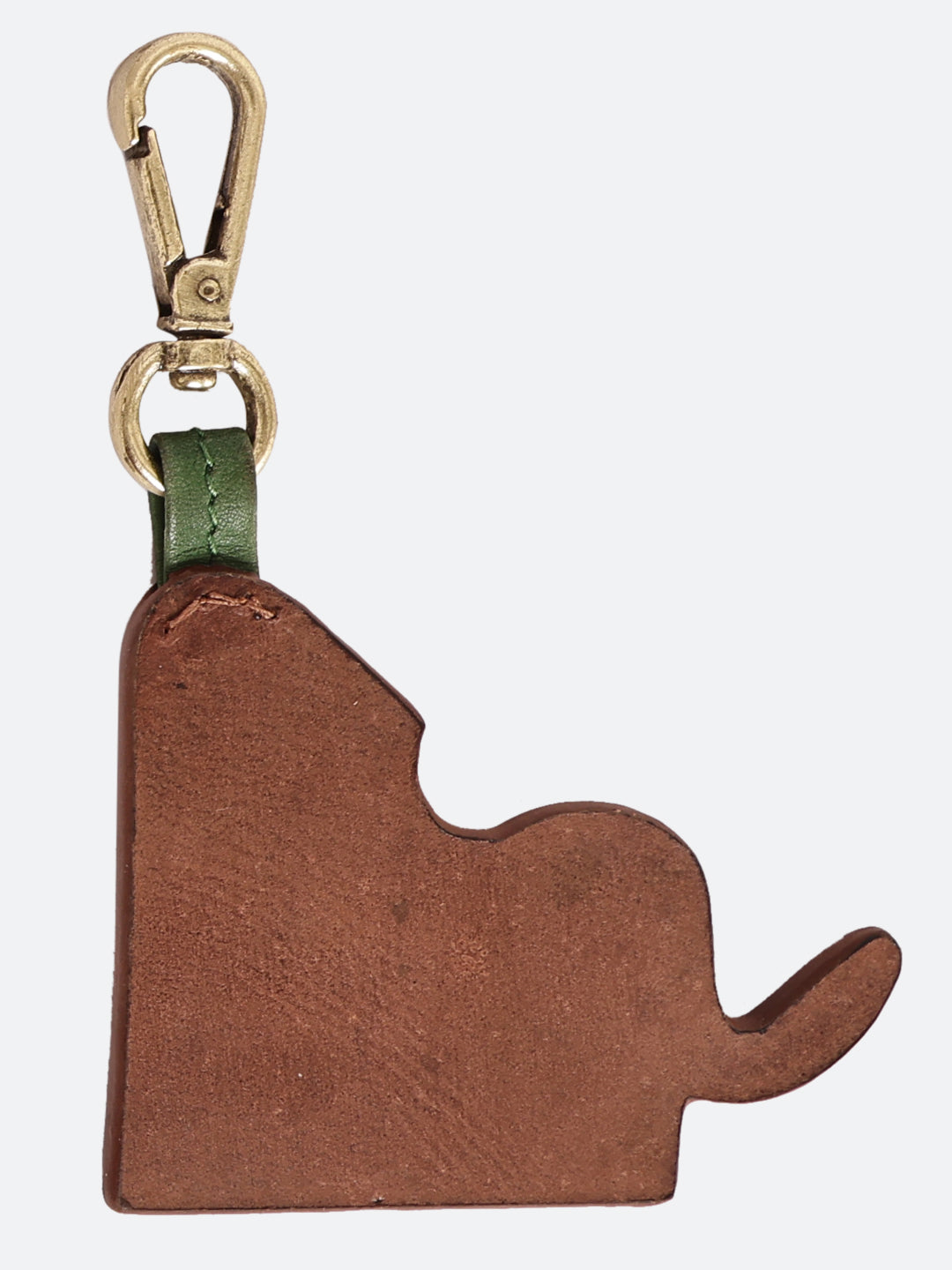 Shaped like a poised feline, this keyring showcases laser-etched animal detailing that reflects agility and mystery. Crafted from genuine leather and paired with antique brass hardware, it adds a bold artistic edge to your keys or bag — a perfect companion for those who appreciate design with attitude.