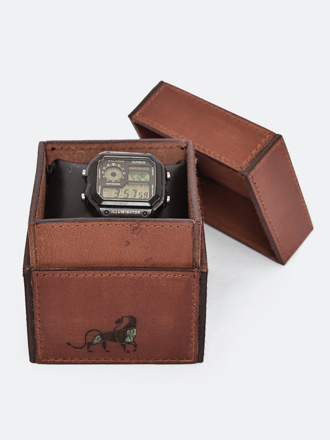 A sturdy and elegant watch case designed to protect your timepieces in style. The surface is detailed with precisely laser-printed animal illustrations, blending sophistication and wilderness in one timeless form — ideal for travel or display.