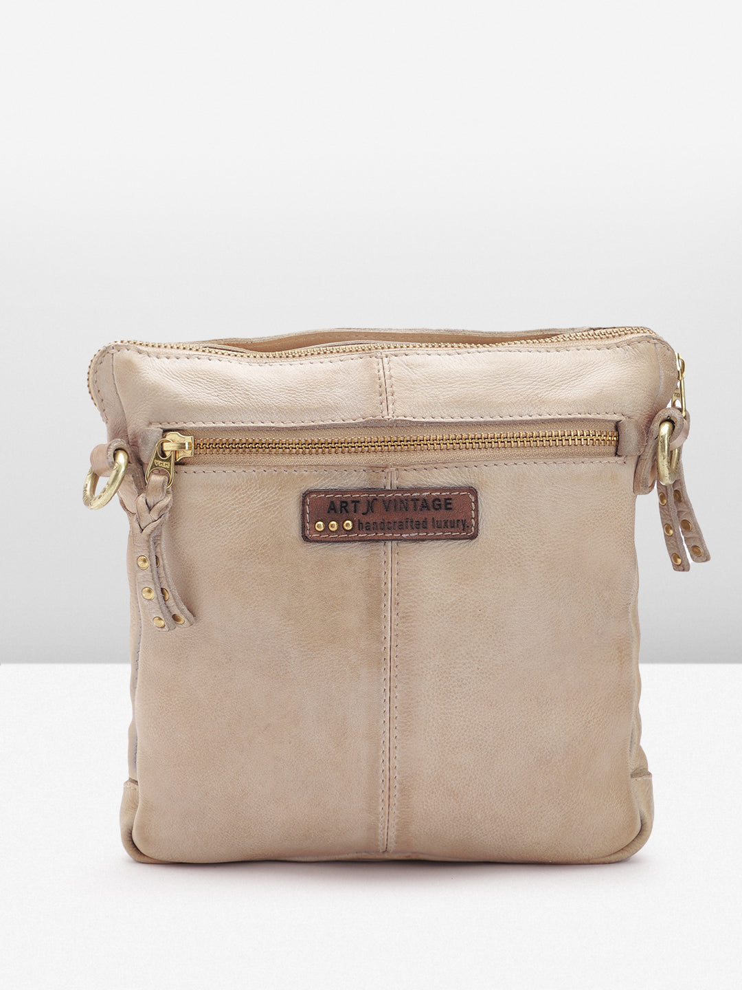 Art N Vintage Glory: Beige Leather Mini Crossbody