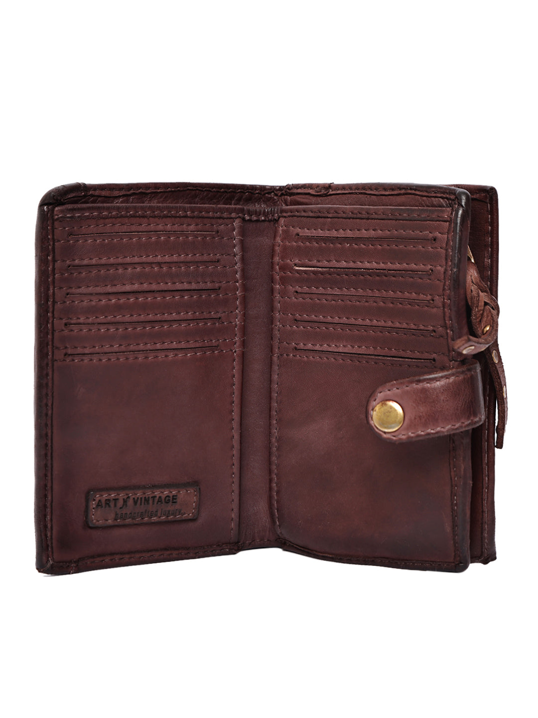 The Art N Vintage Handcrafted Mandala Studded Genuine Leather Wallet is a perfect expression of traditional craftsmanship blended with modern practicality. Made from premium genuine leather, this wallet features a rich brown tone with a hand-rubbed vintage finish that enhances its natural character over time.
