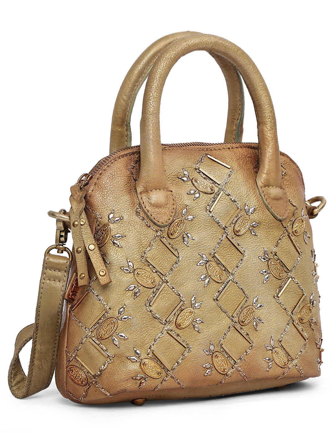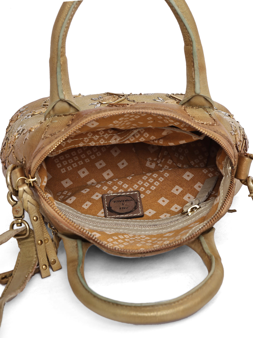 Ashraf Golden Embellished Handcrafted Leather Handbag