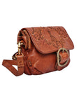 The Aurora Handcrafted Leather Sling Bag is a perfect blend of artisanal craftsmanship and everyday elegance. Made from 100% genuine leather in a rich cognac tone, this bag features intricate hand-woven and embossed detailing that gives it a unique vintage character.