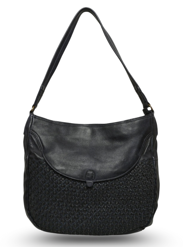 Avea: Navy Leather Weaved Hobo Bag