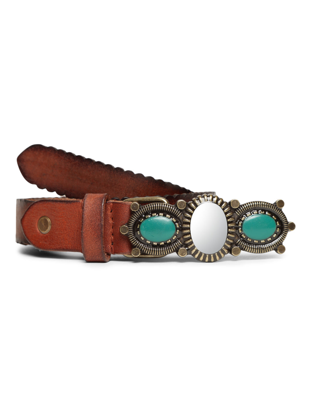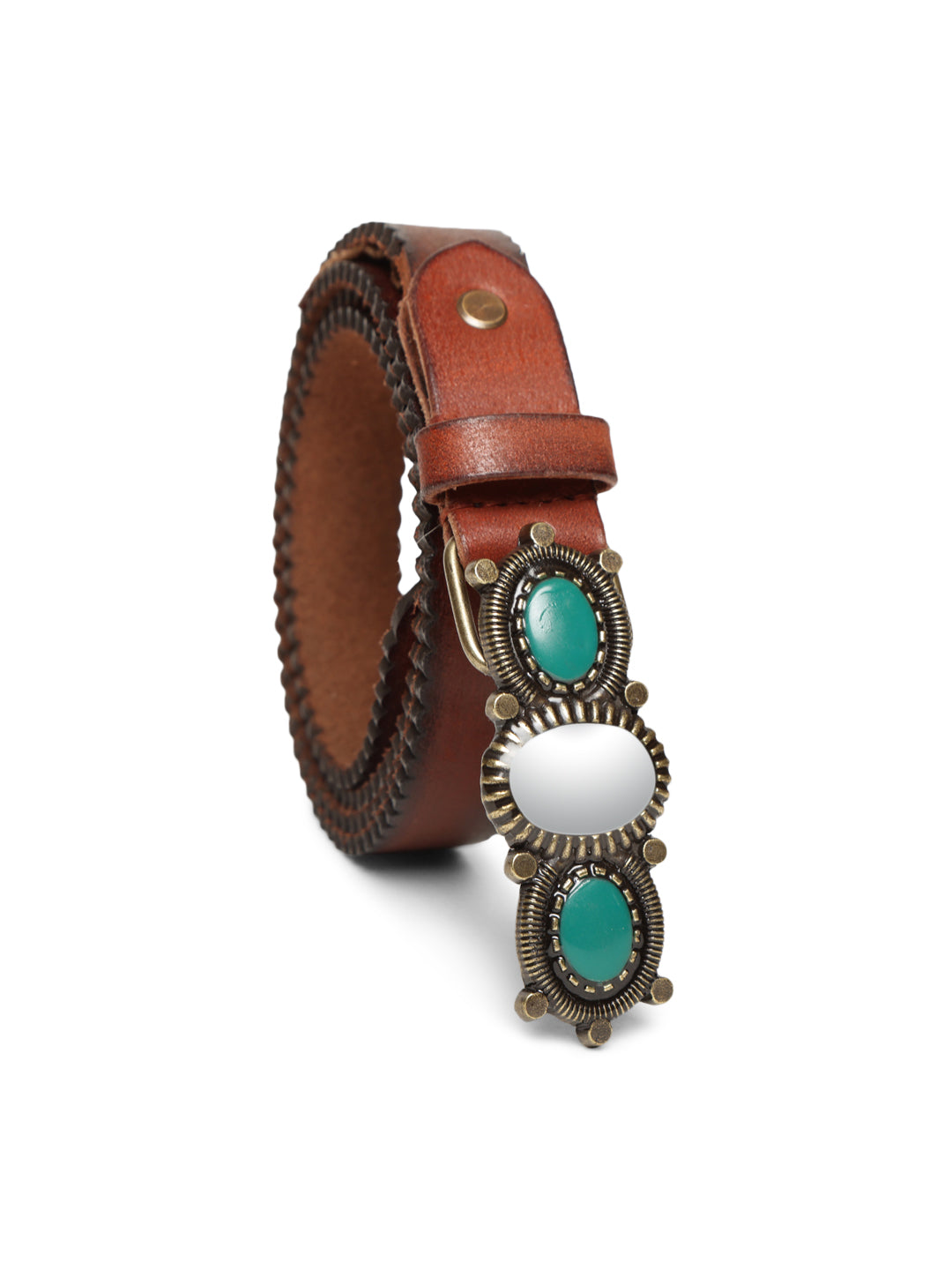 Cognac Women Embellished Leather Belt by Art N Vintage