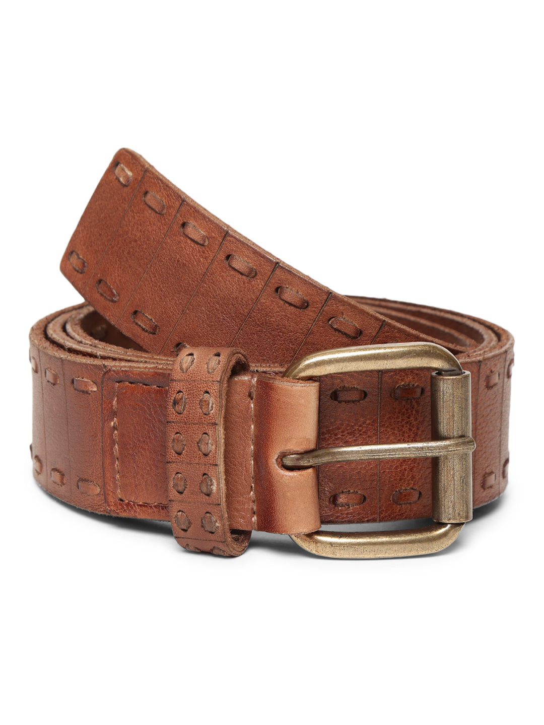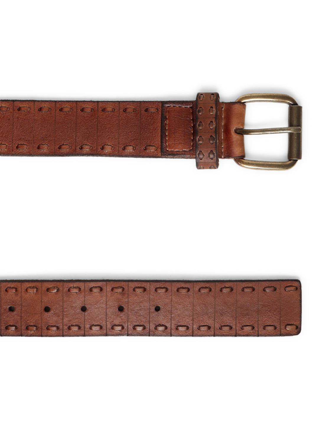Brown Genuine Leather Interlinked Weaving Technique Belt By Art N Vintage