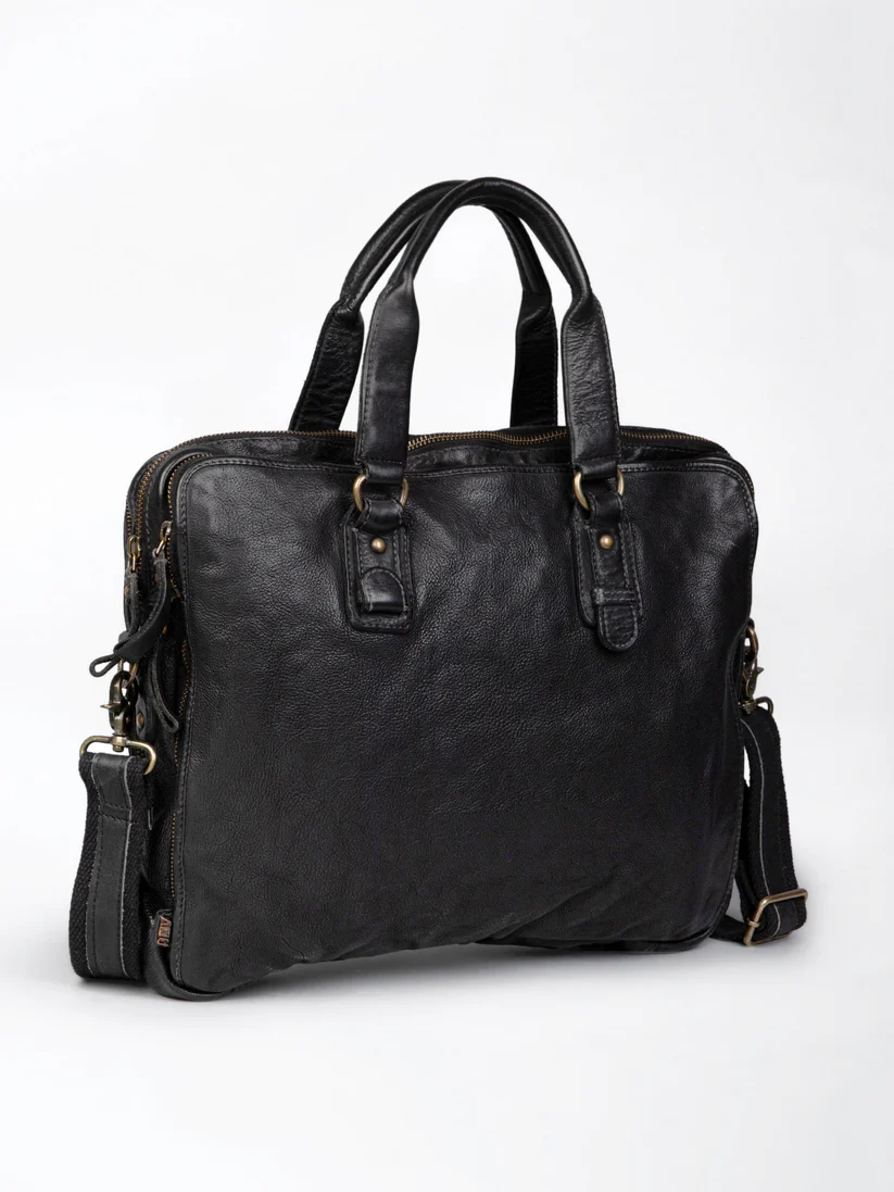 Discover the timeless elegance of our American classic laptop bag. With its washed and dyed leather look and plain pattern, it exudes sophistication and style. The spacious interior is designed to accommodate a laptop and other work essentials, while the adjustable leather strap ensures comfortable transportation.