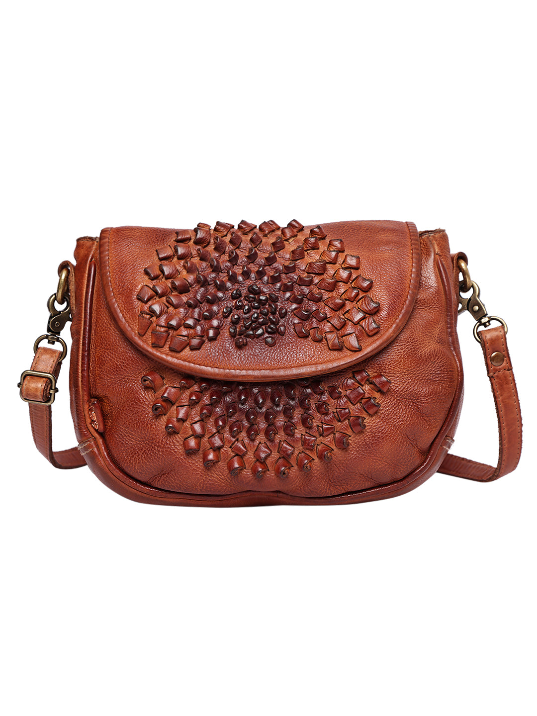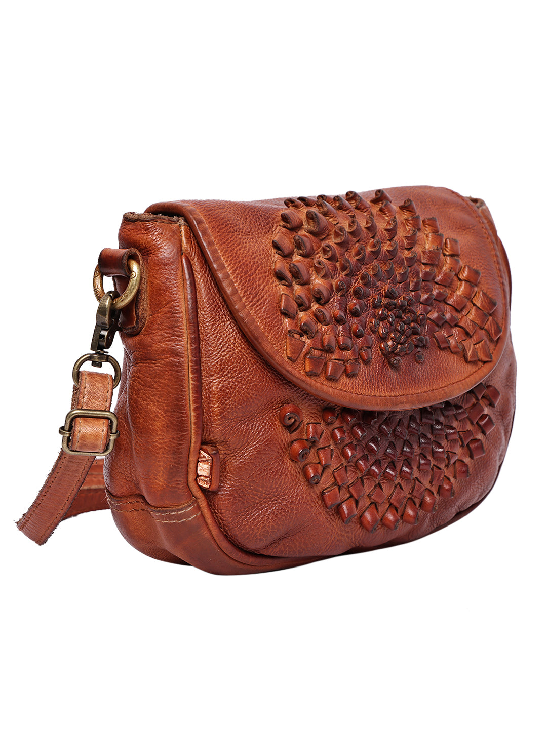 The Celeste Handcrafted Cognac Leather Crossbody Bag is a beautiful expression of timeless craftsmanship and refined elegance. Made from 100% genuine leather, this bag showcases intricate hand-embellished detailing on the front flap, creating a rich textured design that reflects true artisanal skill. The warm cognac tone enhances its vintage appeal and develops a unique patina with use.