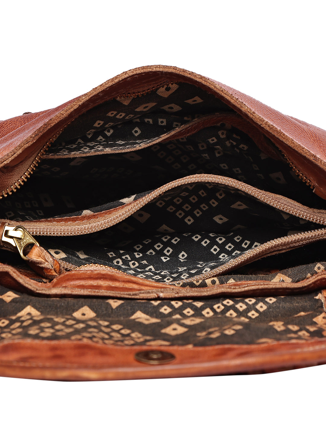 Celeste Handcrafted Cognac Leather Crossbody Bag