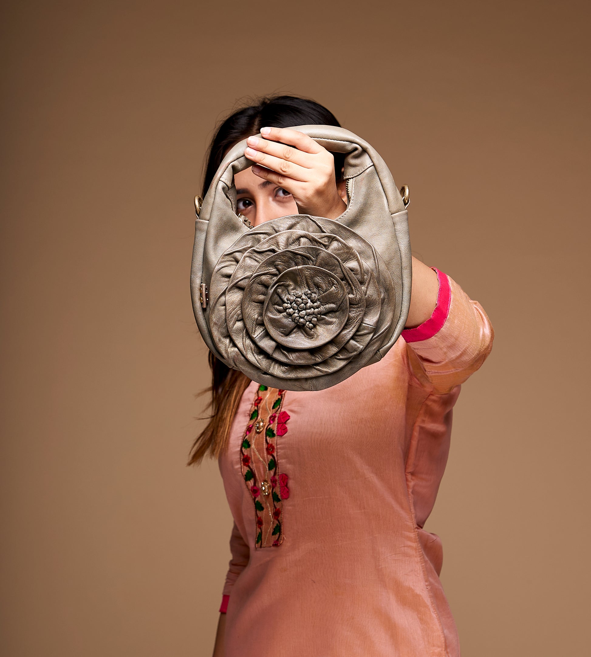 - Artful Embellishment: Features a delicate floral design on the front, blending natural charm with sophisticated aesthetics.