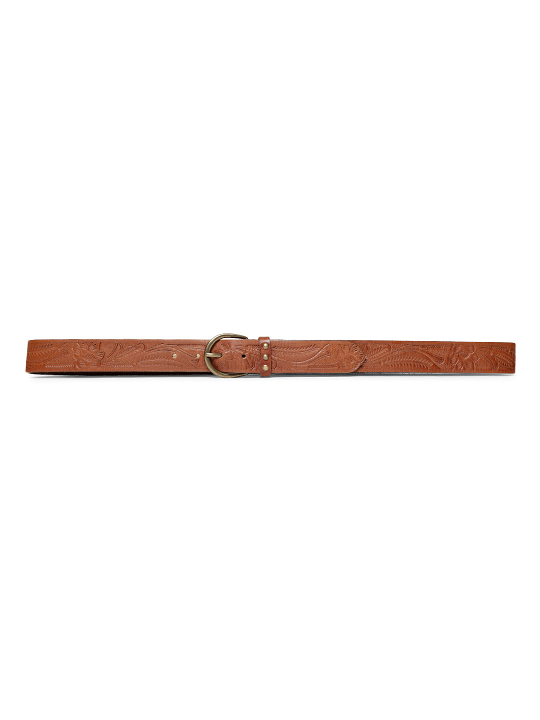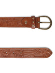 Cognac Hand-tooled Design Leather Belt By Art N Vintage