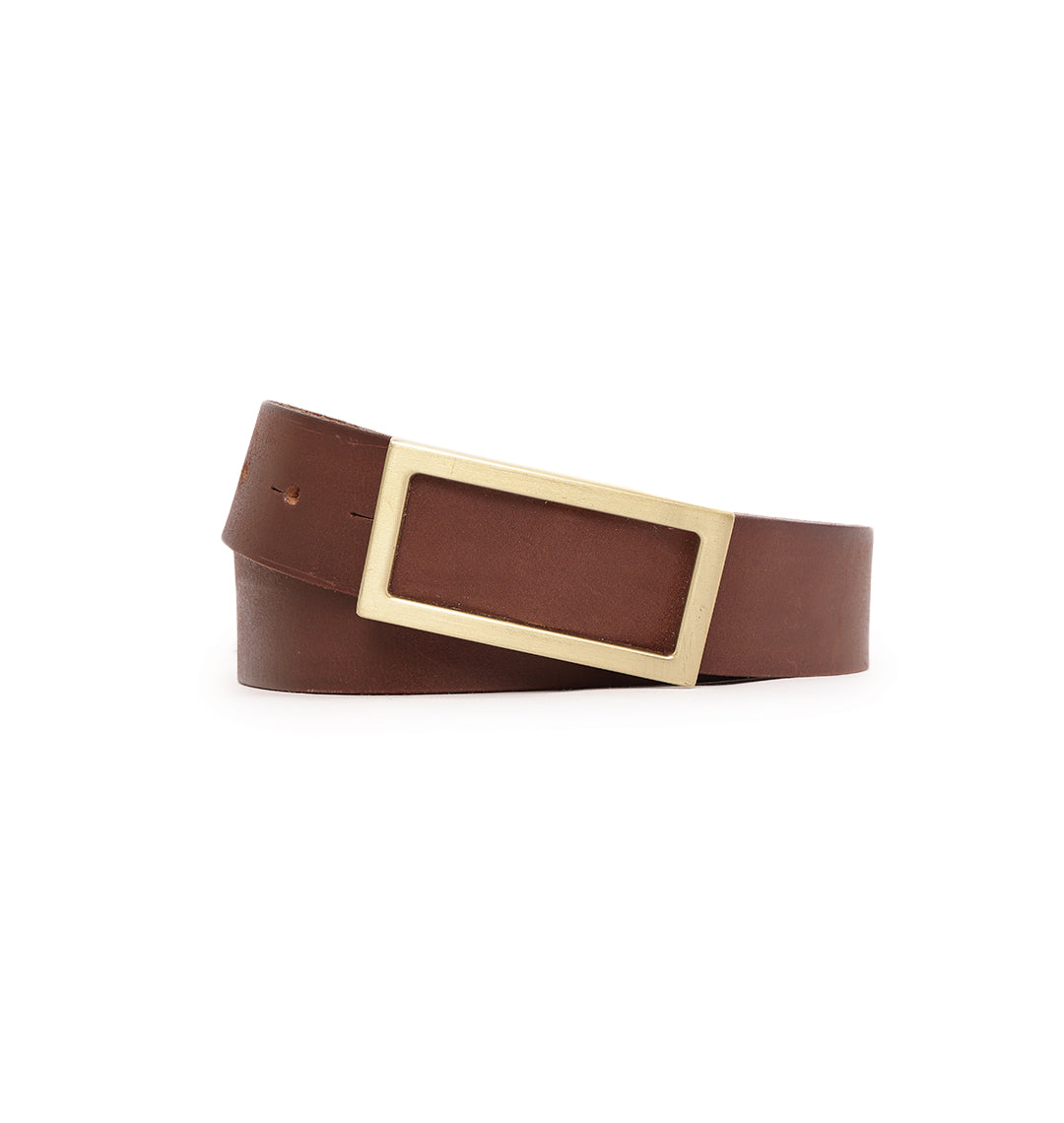 Cognac Modern Minimalist Rectangular Buckle Belt by Art N Vintage