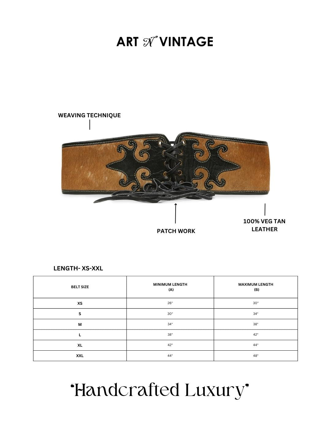 Cognac Patchwork Leather Belt For Women By Art N Vintage