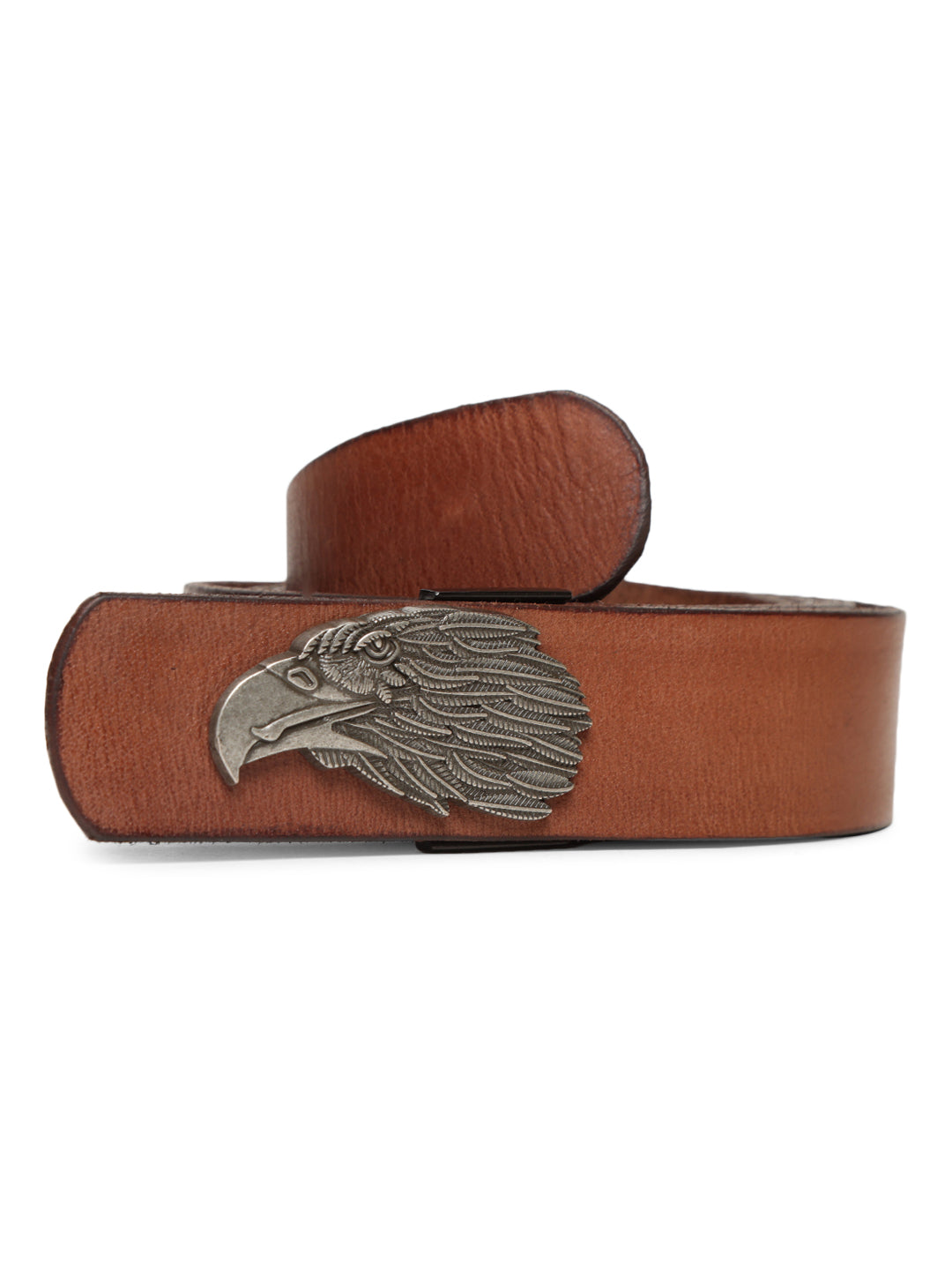 Cognac Plain Belt With Eagle-shaped Metal Buckle By Art N Vintage
