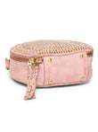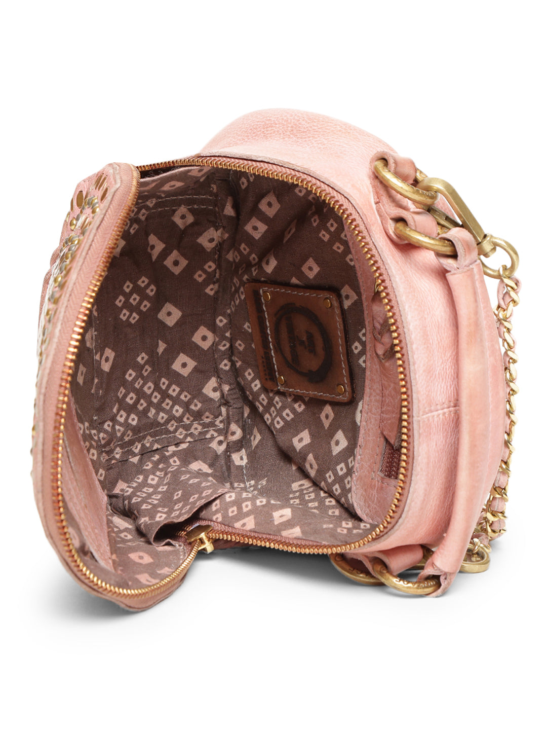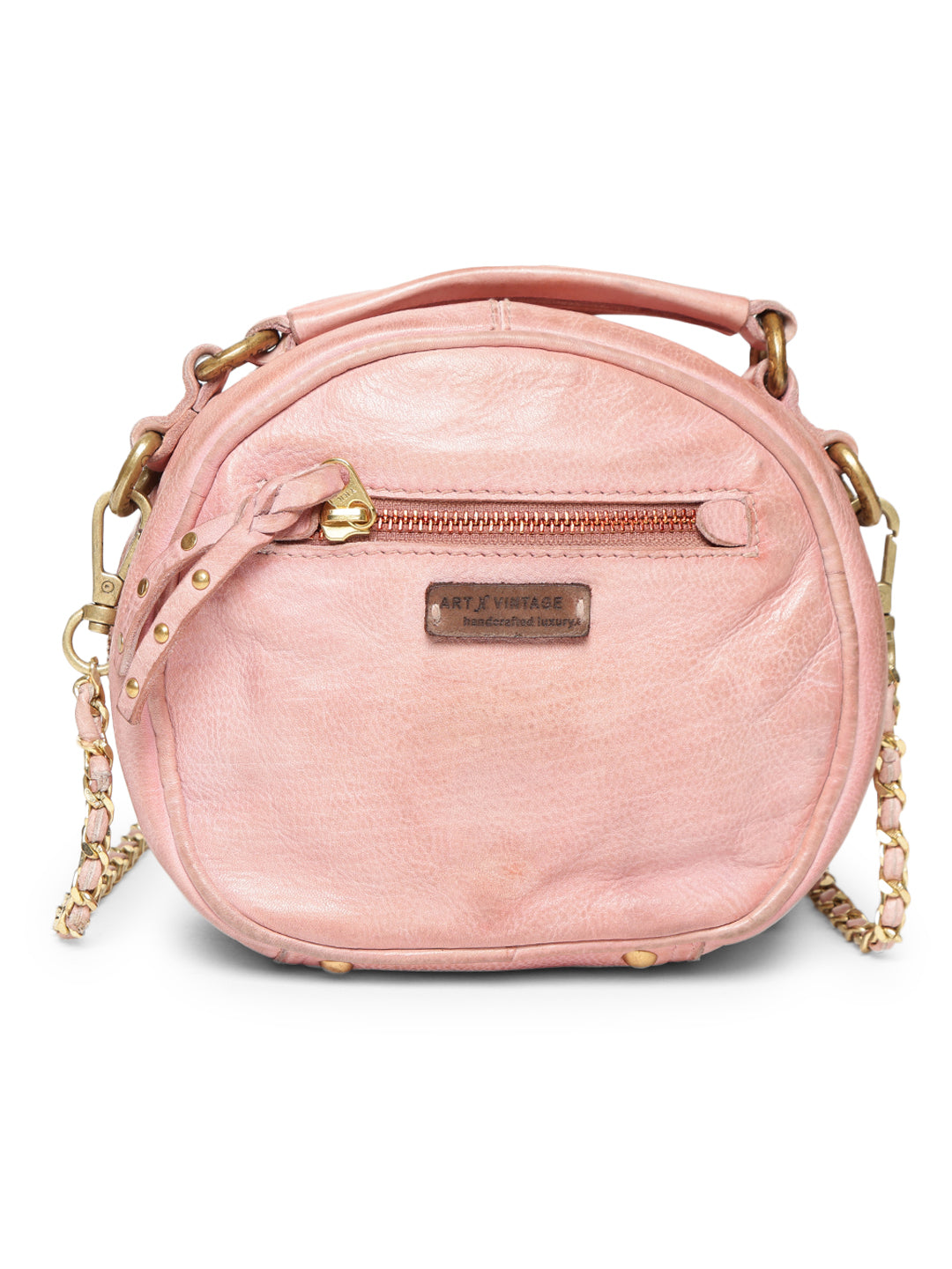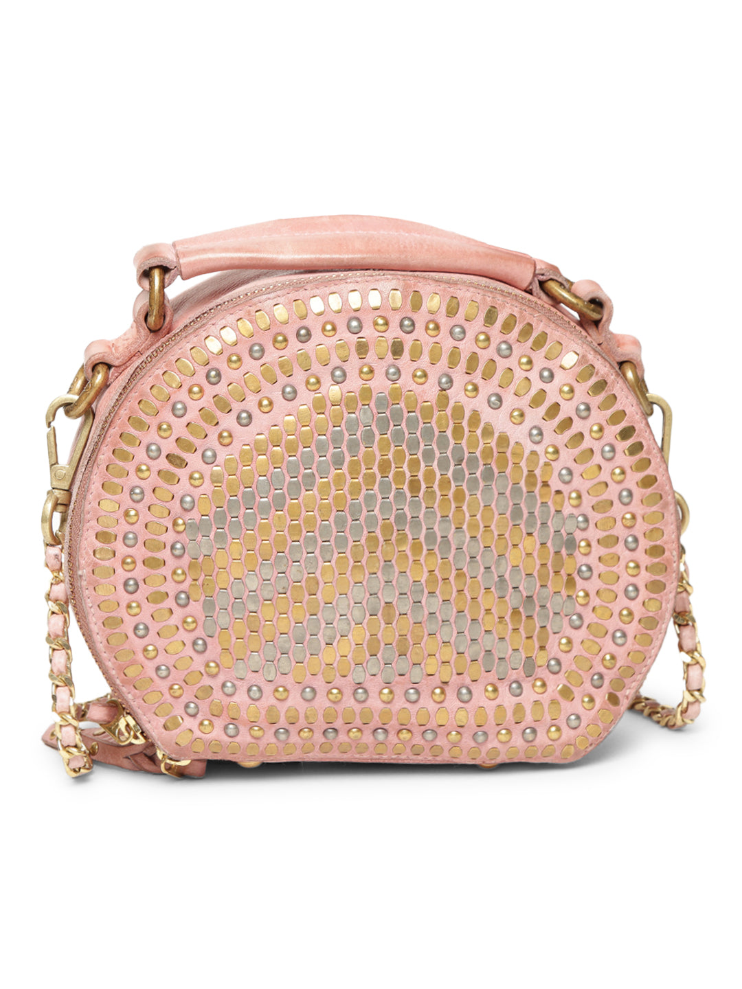 Chic Riveted Elegance: Opulent Lvory Leather Round Shape Crossbody with Chain Handle By Art N Vintage