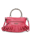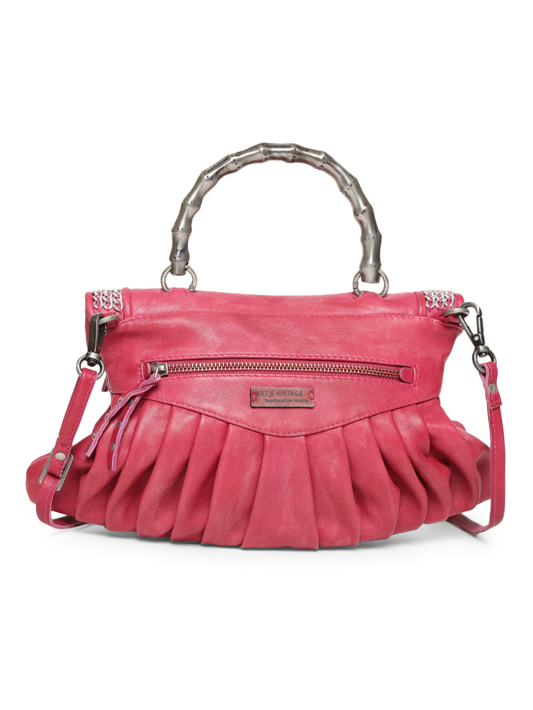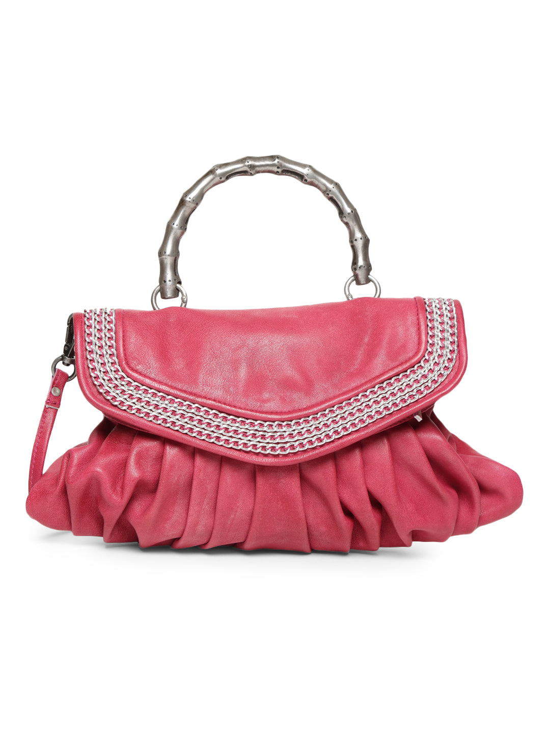 - Detailing: Bamboo-inspired handle, chain & tucks adorn flap & complement the pleated design.