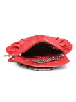 - Strike the perfect balance between sass and sophistication with our statement-making pleated V-panel and playful metal chain tucks adorning the flap.