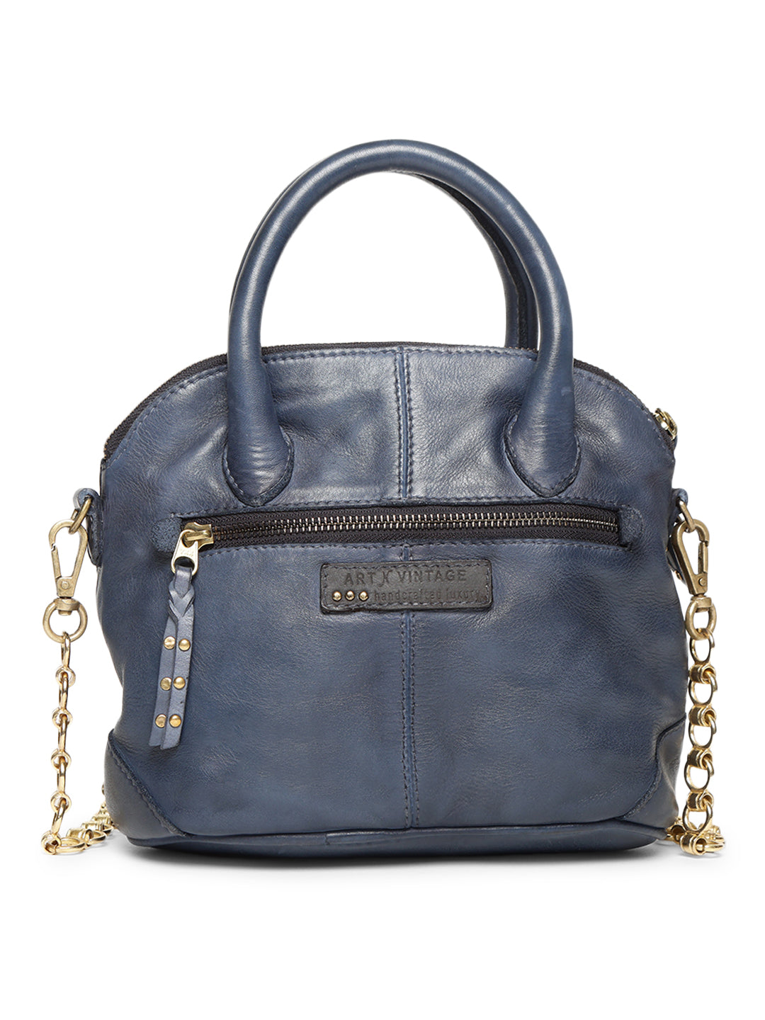 SILVIA: Navy Blue Leather Women Handbag By Art N Vintage
