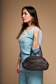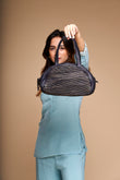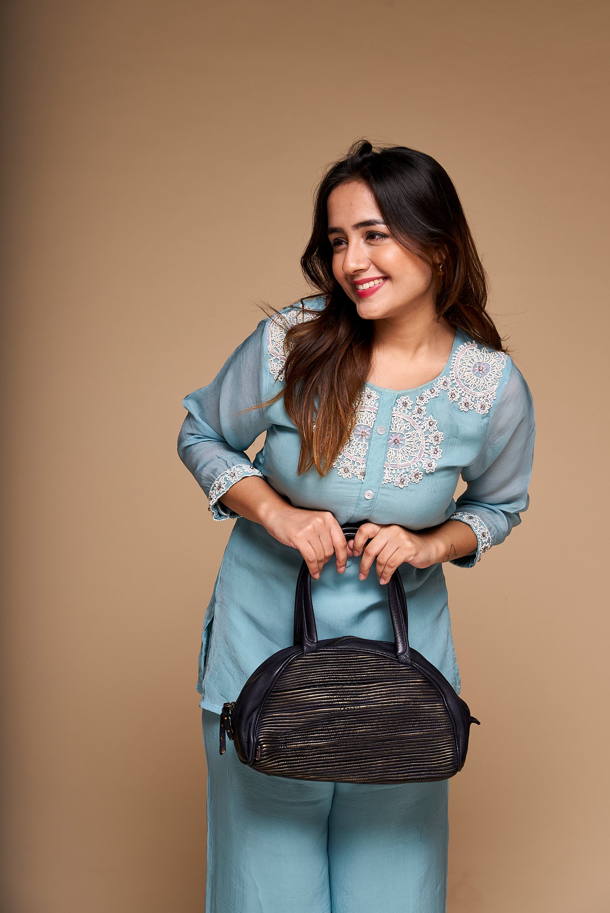 The interior is thoughtfully designed with a soft, patterned lining and multiple compartments, offering both functionality and style. With its spacious main compartment, secure zipper closure, and dual sturdy handles, the Cosette bag ensures comfort and convenience for everyday use or special occasions.