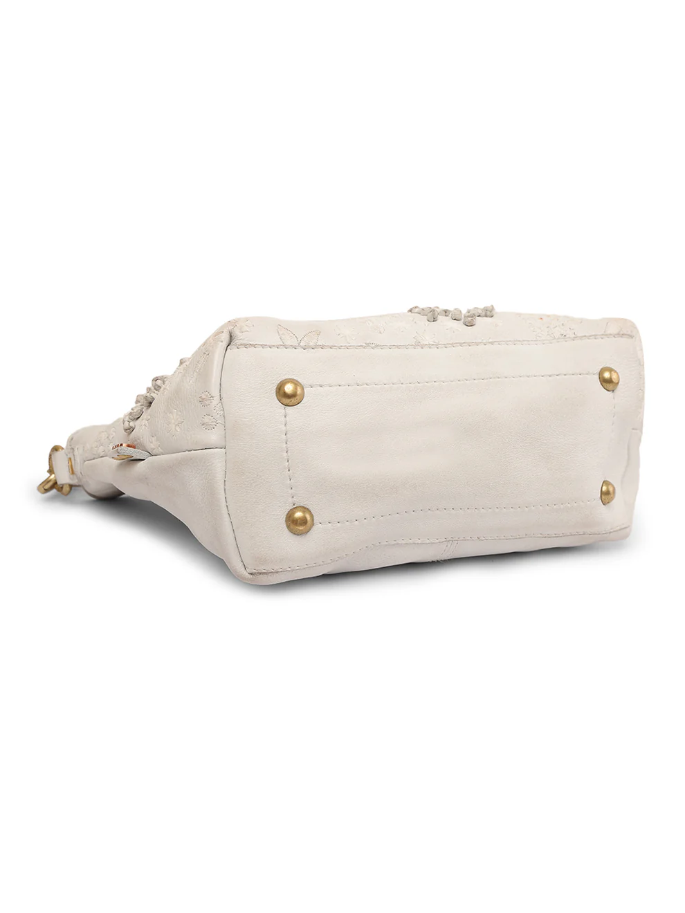 Floral Bliss: L.Green Leather Mini Tote bag with Flower Embroidery
