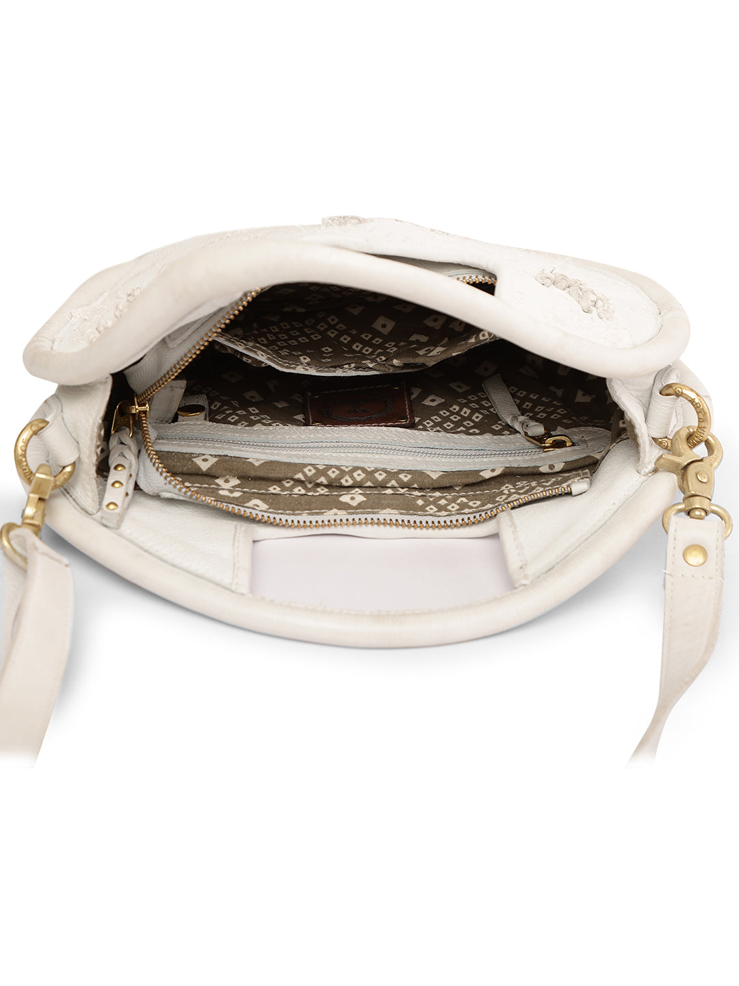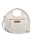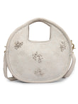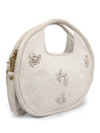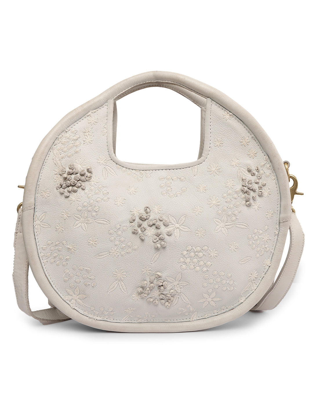 Floral Bliss: Round White Leather Handbag with Flower Embroidery