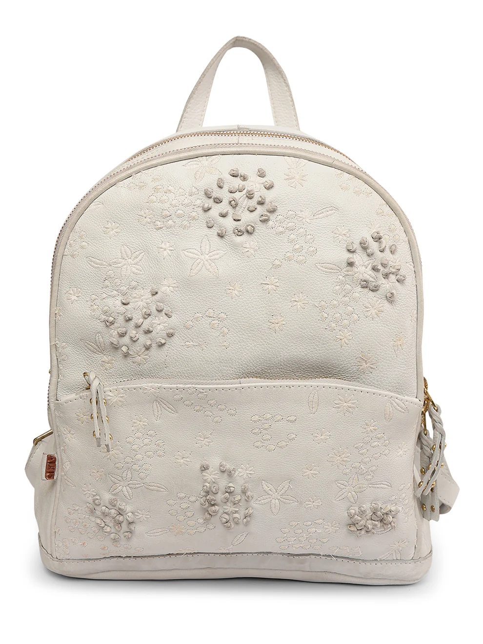 Floral Bliss: Leather Backpack bag with Colorful Flower Embroidery