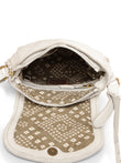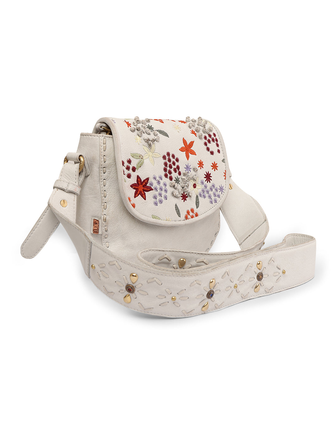 Floral Bliss: White Leather Crossbody bag with Colorful Flower Embroidery