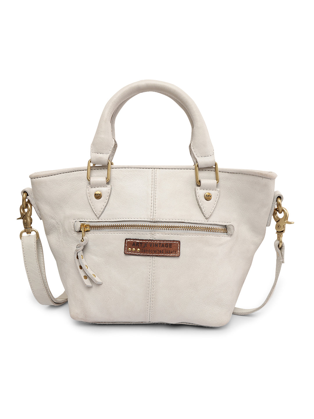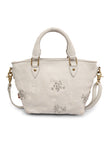 Floral Bliss: White Leather Mini Tote bag with Flower Embroidery