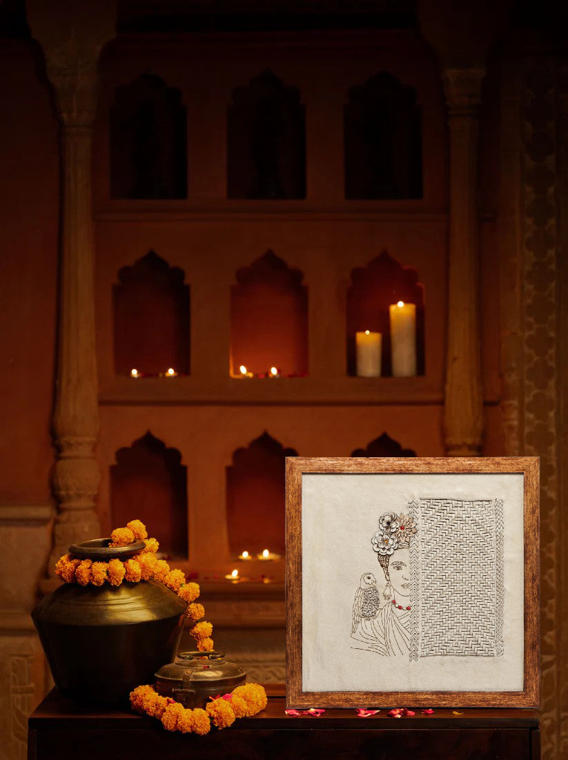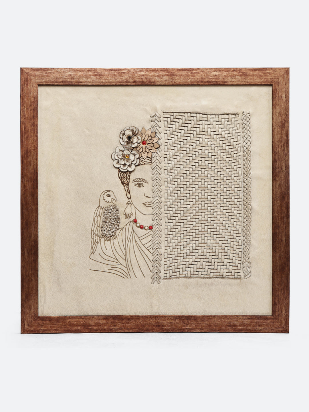 Celebrate timeless craftsmanship with this Handcrafted Leather Art Wall Frame, where traditional artistry meets contemporary design. Created on genuine leather, this unique wall artwork features a delicately illustrated feminine muse adorned with floral details, handcrafted embellishments, and subtle bead accents.