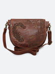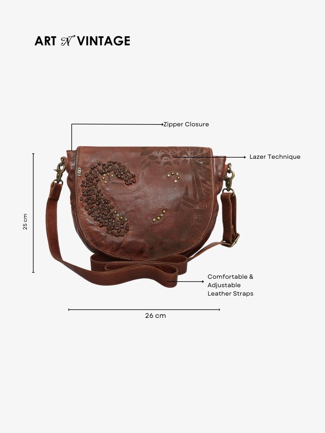 Crafted with precision and attention to detail, this crossbody bag boasts a stunning grey leather exterior that catches the light with every movement, exuding an aura of understated luxury. This cross-body bag is a perfect partner for a casual or travel look. Love for vintage bags makes this style an ideal gift for any occasion that calls for a gift. The mesmerising laser-cut design on the front panel adds an enchanting touch reminiscent of delicate lacework, elevating the bag into an actual work of art.