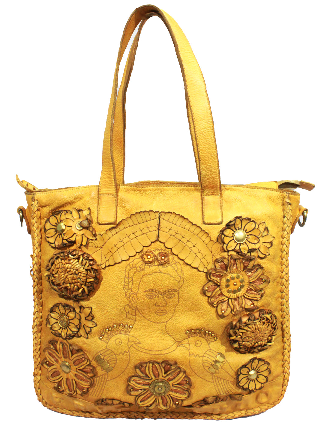 FRIDA KAHLO : Yellow Leather Shoulder Bag By Art N Vintage