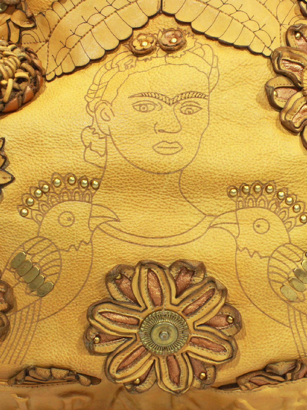 - This leather beauty from Art N Vintage is inspired by Frida Kahlo's "The Frame". It's a unique blend of creativity and craftsmanship handcrafted by skilled artisans that resonates with my style. Both sides tell a unique story, just like my journey. Here's to celebrating the blend of personal flair and exquisite design!