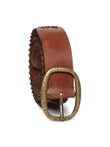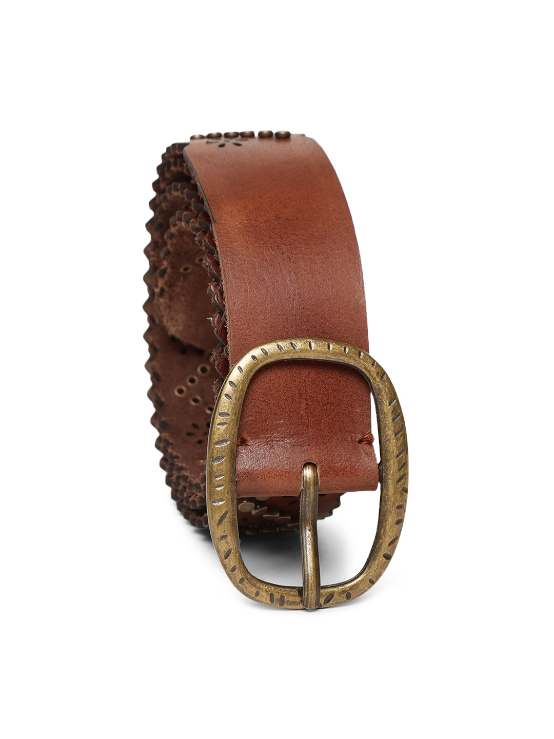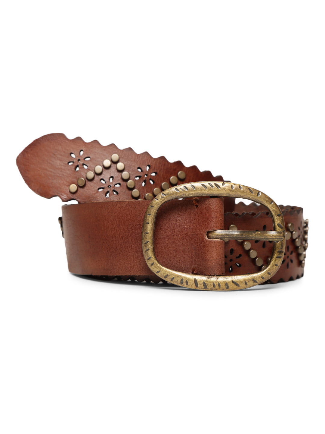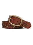 Cognac Studded Genuine Leather Belt By Art N Vintage