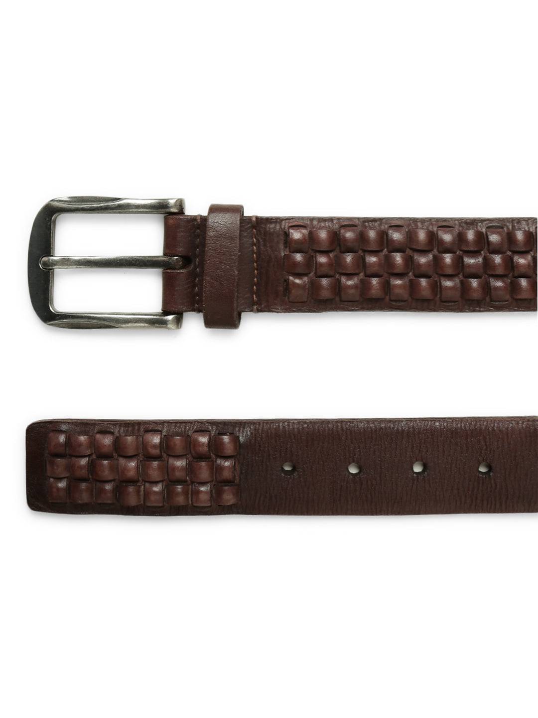 Introducing the Leather Interlace Weave Belt – a fusion of craftsmanship and style. With its intricate interlaced weaving pattern and square punch design, this belt stands out as a symbol of sophistication. Fasten it securely with the metal buckle closure, suitable for every occasion. Elevate your look effortlessly with this versatile and timeless accessory.