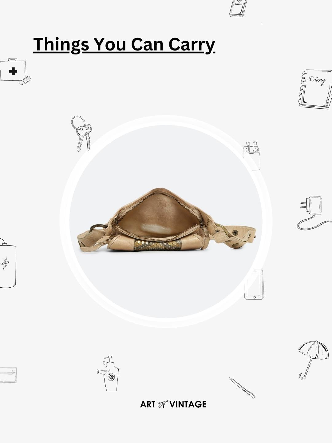 The crossover waist belt bag is a favorite travel product. The ease of wearing it around and accessible pockets to store your wallet passport, and tickets when you travel make it a wanted bag style. The zip pocket under the flap and the main compartment with a zip closure and a back zip pocket are good enough to provide ample storage space on the go. The fixed but adjustable belt has multiple snap buttons to hold it as per your waist size. The front of the flap has metallic studs in the formation of dragonskin, giving that extra edgy style to be carried.