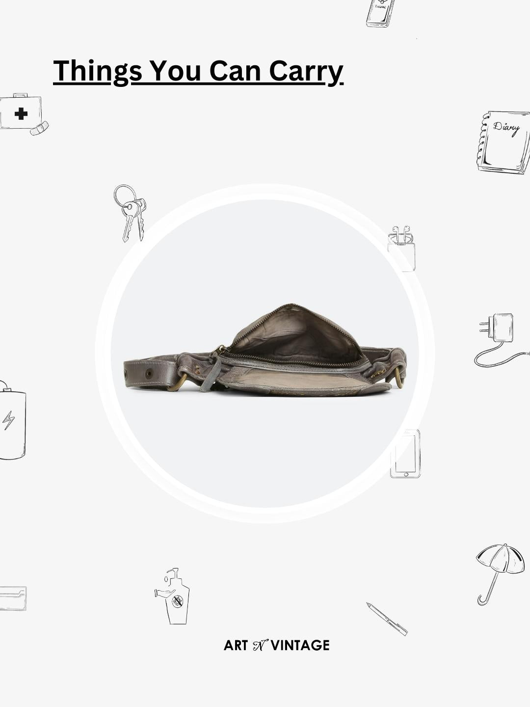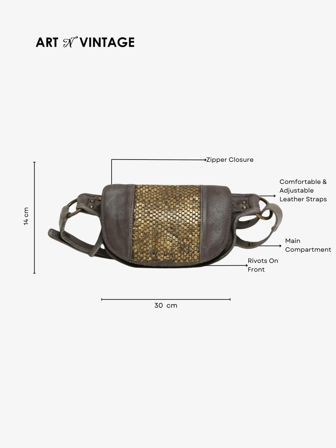 Genuine Grey Leather Waist Belt Bag