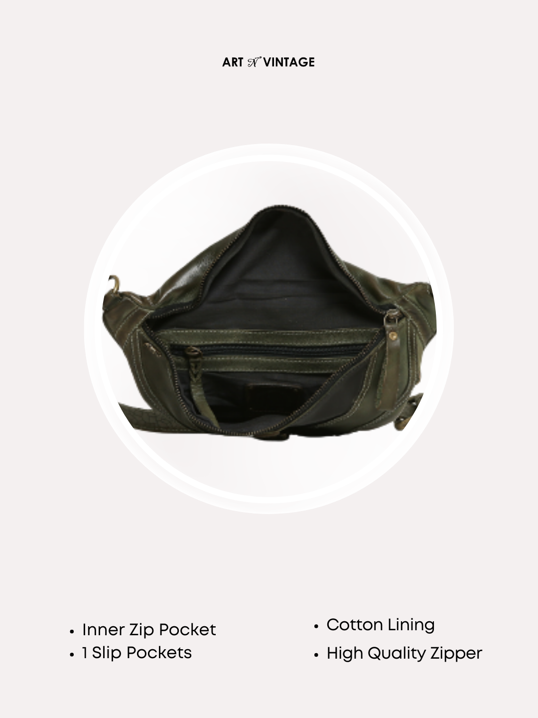 This bold green waist belt bag is inspired by the superhero you are and is designed especially for enthusiasts bikers who will go places. The bag is made of durable leather and features a brass buckle, adjustable belt strap and multiple pockets for carrying the biker's essentials; Be the superhero to add some flair to your riding adventure on the road. Product Details: