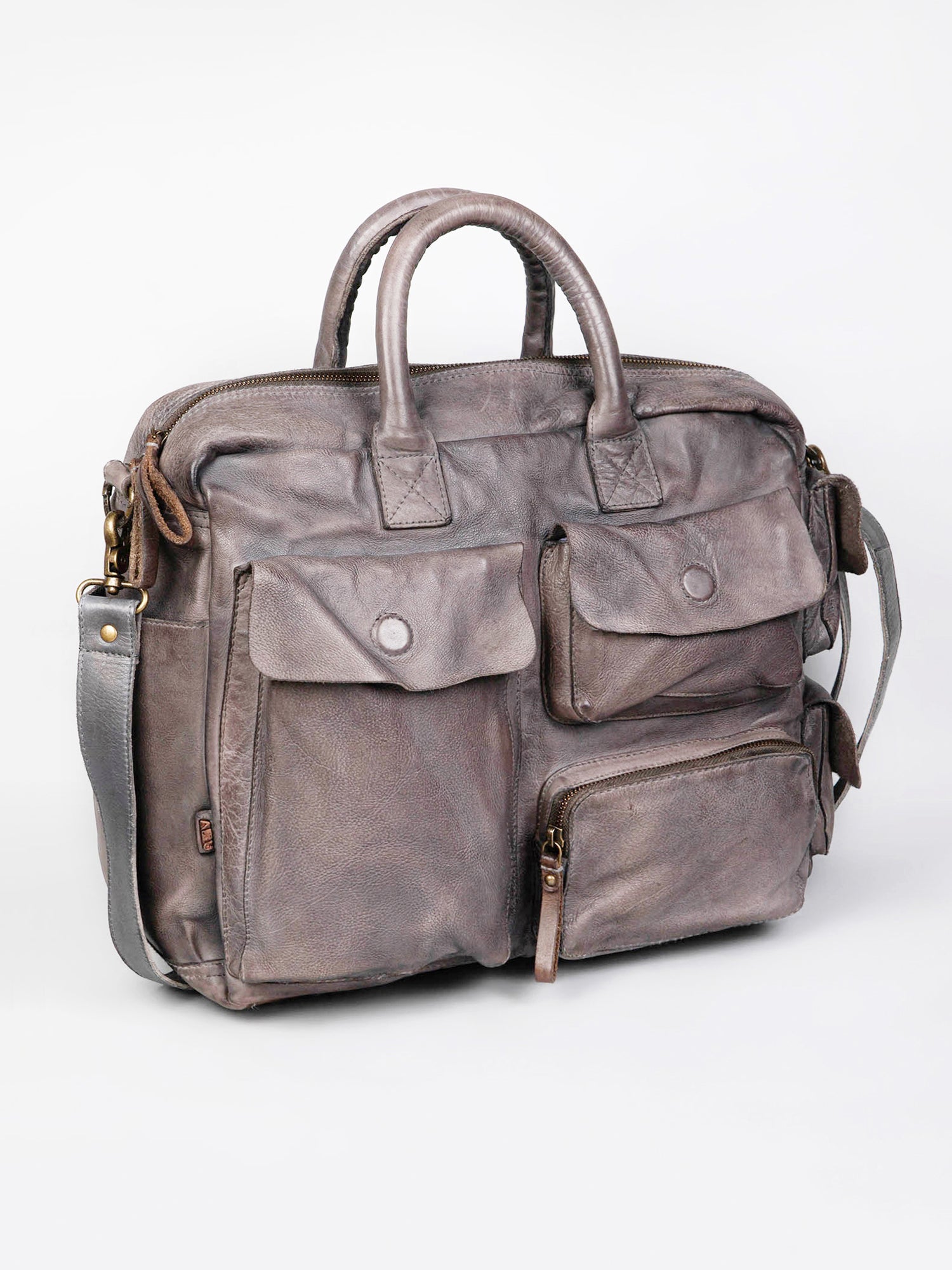 Introducing our vintage-inspired men's laptop bag, exuding timeless charm with its washed and dyed leather look and subtle plain pattern.
