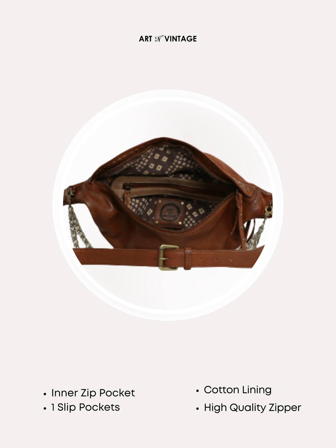 A waist leather bag for biker women is a stylish and practical accessory made of high-quality leather along with stylish golden chains and mini studs to be worn around the waist, providing a hands-free way to carry your belongings while you ride your motorcycle. The finishing on the leather gives it a protective covering with a little splash of water, dirt & dust while you ride with it. The adjustable waist belt helps it to be carried around the waist & across the shoulder. Product Details: