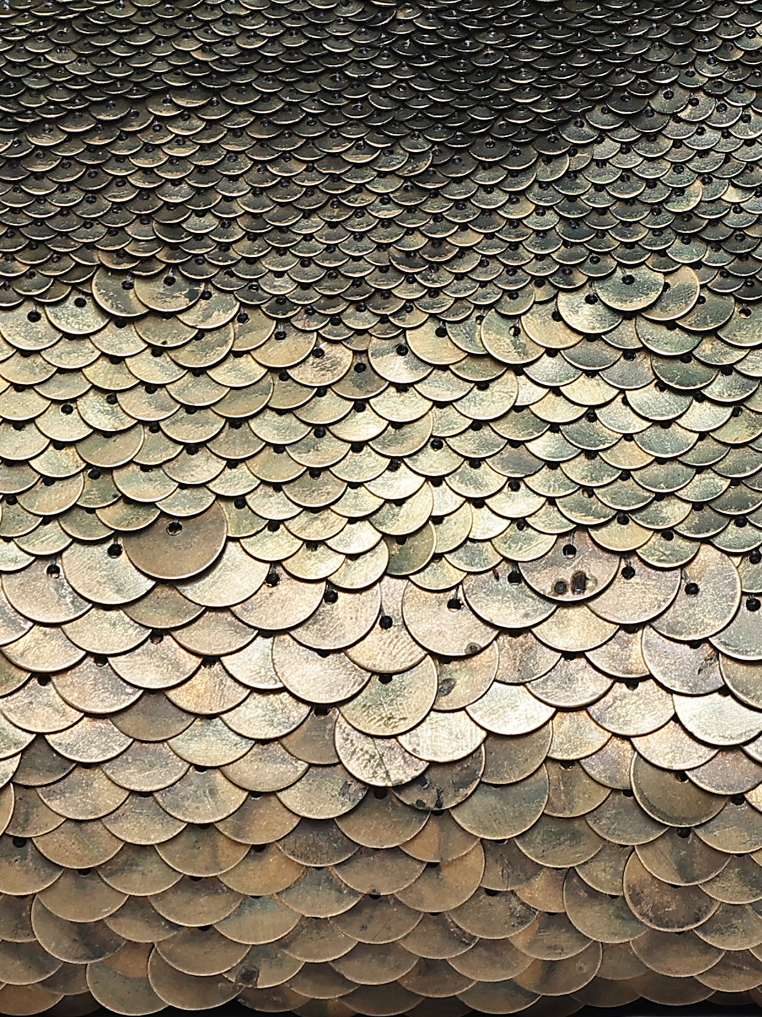 . Front Design: Hand-applied Metal Scale Embellishment