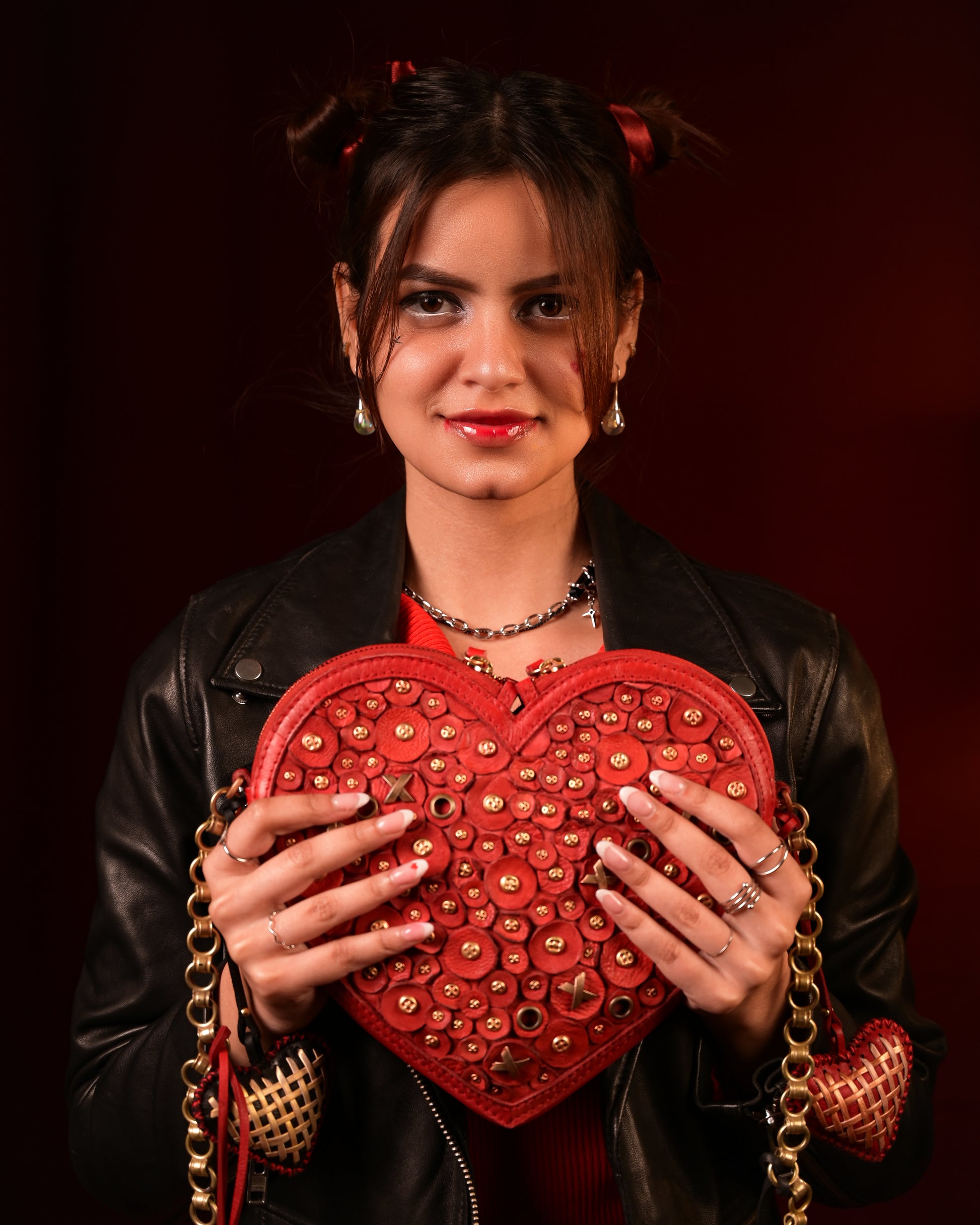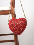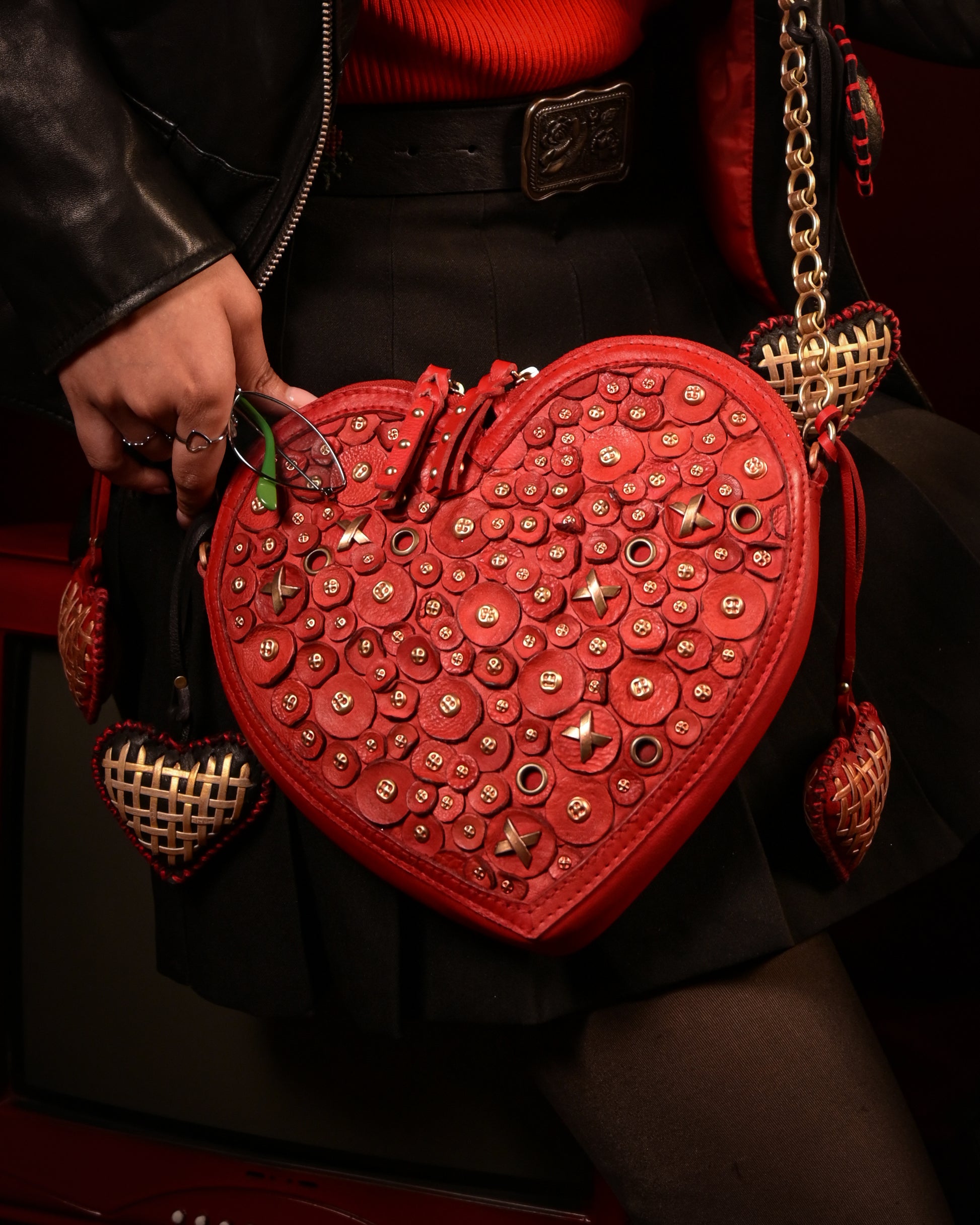 Red Heart Shaped Leather Handbag by Art N Vintage
