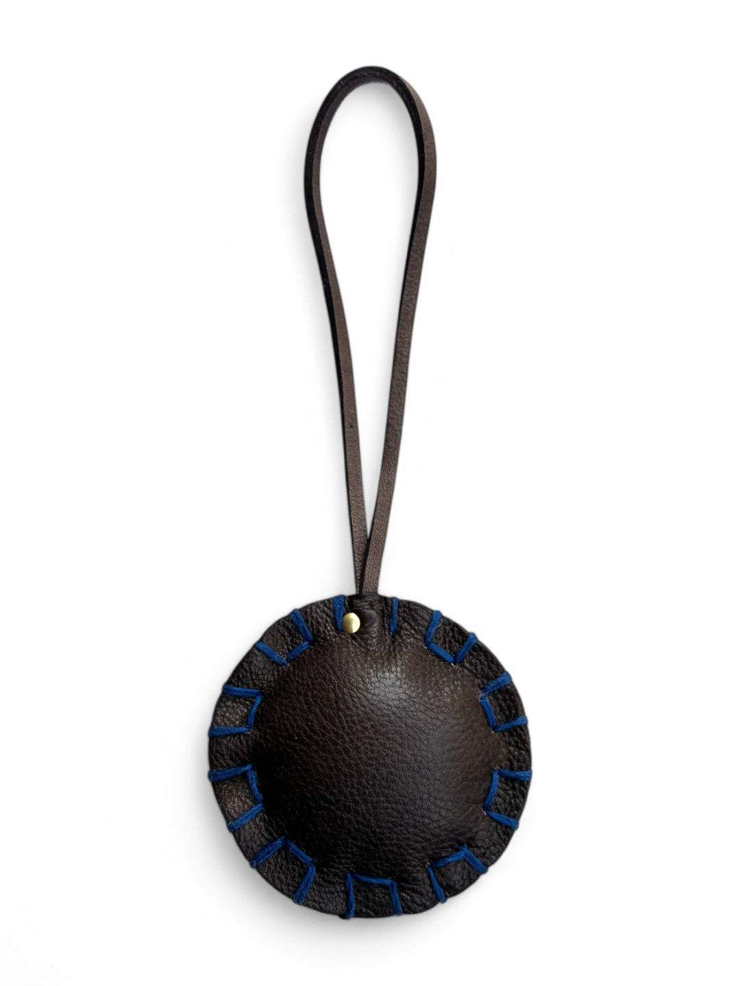 Round olive leather bag charm by art n vintage